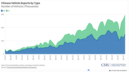 中国制造的传统燃油车出口量在各地区持续攀升,这对新兴市场的传统汽车生产体系构成严峻挑战。作为外资车企制造中心的印尼、南非和巴西等国处境尤为艰难——这些国家的汽车产业严重依赖现有厂商的持续投资,而这些厂商正面临来自中国等新兴企业的激烈竞争。当前,各国政府正采取双轨策略:或大力吸引新一代技术投资,或重点扶持本土电动车制造商,以此对冲传统燃油车产业可能衰退的风险。若固守传统模式,包括美国车企在内的老牌制造商将面临严峻挑战;反之,对能够提供符合本土需求的新技术企业而言,这或许意味着重大机遇。