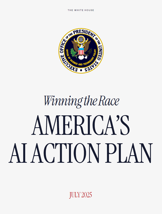 7月23日,美白宫发布了名为《赢得AI竞赛:美国AI行动计划》(Winning the AI Race: America’s AI Action Plan)的政策文件,旨在通过全面战略部署,确保美国在全球AI领域的绝对主导地位。该文件依据特朗普总统1月23日签署的《消除美国AI领导地位障碍》(Executive Order 14179)行政命令制定,围绕“加速AI创新、建设美国AI基础设施、领导国际AI外交与安全”三大支柱提出超过90项联邦政策行动。该计划特别关注与中国在AI领域的技术竞争,力求通过技术出口、出口管制和国际合作,确立美国在全球AI生态的核心地位。