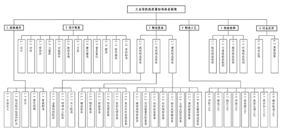 工业母机高质量标准体系主要由基础通用、设计配套、制造装备、制造工艺、检验检测、行业应用6个层次,34个大类、17个小类内容组成,并根据工业母机产业发展进行动态调整。标准体系框架如图3所示。