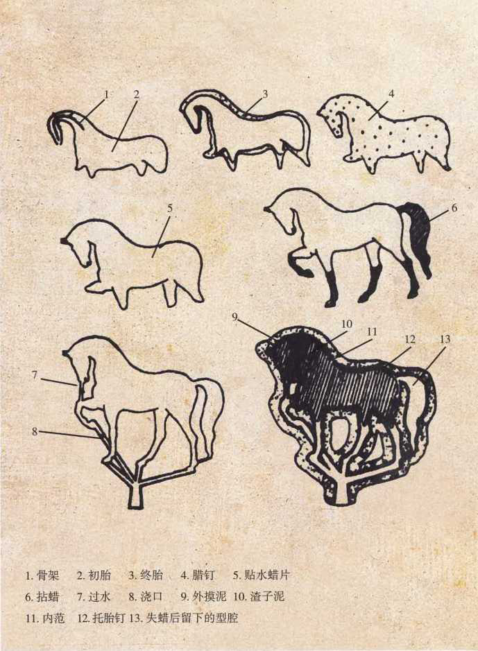 云南传统失蜡铸造法工艺过程示意图