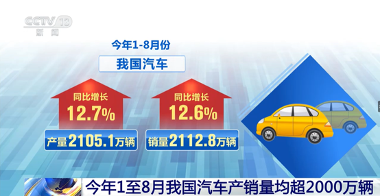 1—8月,汽车产销量分别完成2105.1万辆和2112.8万辆,同比分别增长12.7%和12.6%。产量增速较1—7月持平,销量增速扩大0.6个百分点。中汽协副秘书长陈士华表示:“这是历史上1—8月产销量首次双双超过2000万辆。”