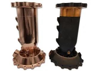 腔体本身由铜合金打印而成,具有出色的传热性能,但需要在结构上进行加固。这就是 CSD 的用武之地。该技术使用超音速气体射流将固体粉末喷射到表面上。在撞击时,颗粒变形并粘附在表面上。夹套在不增加太多重量的情况下提供结构加固。该技术还使用动能代替热量来涂敷夹套,这有助于减少或消除材料收缩。