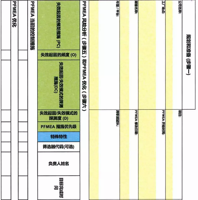 给出了新的PFMEA表格的模板: