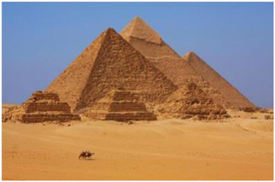 规模最大的胡夫金字塔高136.5米,底长230米,共用230万块石块砌成,被誉为“世界七大奇迹之一”。科学家们基本证实,当时的人们从远处开凿出石块后,运输到建造金字塔的地点,然后沿着金字塔内部的螺旋通道将石块向上拖运,一层一层的堆砌成了金字塔形状,每层之间使用特殊的材料将石块粘接起来,保证了金字塔的稳固。胡夫金字塔是十多万名工匠花费了20多年完成的,经过四千多年依然挺立在尼罗河之畔。