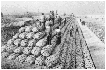 作用如此巨大的都江堰是由许许多多的竹笼构成的,像图中看到的这样,使用毛竹编成大竹笼,在笼内装满卵石,然后抛入江中,累积成为一道大坝,这种化整为零、集零为整的结构也体现出我国古代劳动人民的勤劳和智慧。