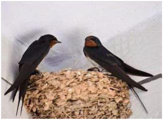 还有,大多数的鸟儿在繁殖的季节,会建造一个小小的巢穴。这和人们结婚要布置婚房是一个道理。燕子会用泥巴、羽毛、树枝等小东西,顺着周围一点点地堆积,筑成用来孵蛋和哺育脆弱的鸟宝宝的巢。唐代诗人白居易有一首五言律诗《燕诗示刘叟》,里面就描述了这样的现象:“梁上有双燕,翩翩雄与雌。衔泥两椽间,一巢生四儿。”意思就是说:屋梁上来了一双燕子,翩翩飞舞,一雄一雌。衔泥在椽条间垒窝,一窝生下乳燕四只。
