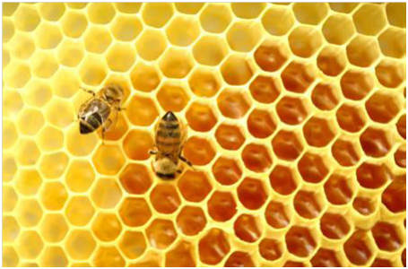 我们知道,蜜蜂是一种十分勤劳的动物,春暖花开的时候,小家伙们嗡嗡地在花丛中采集花粉,然后带回蜂巢喂养蜂后和刚出生的小蜜蜂。蜜蜂怎样“盖起”自己的房子的呢?和燕子到处飞呀飞地去找材料不一样,它们自己会分泌一种叫“蜂蜡”的东西,蜂蜡遇到空气就会由液体变为固体,蜜蜂将蜂蜡一点点地弄出来按照六边形的样子连接起来,就是蜂巢的一层了。这样一层层地重复劳动,就形成了完整的蜂巢。