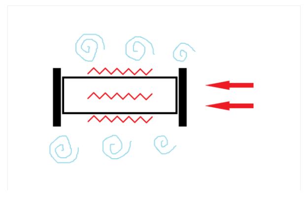 从流体的角度来分析,任何非流线型物体,在一定的恒定流速下,都会在物体两侧交替地产生脱离结构物表面的旋涡。相似的有卡门涡街效应。