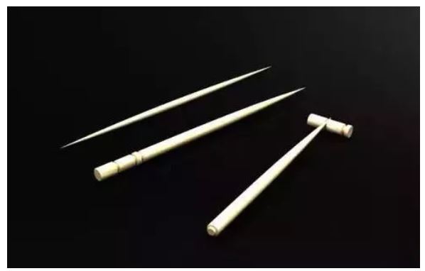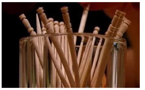 大家经常看到的牙签一头尖,一头平的还刻着几个槽。有没有想到过,平的那头为什么要费功夫雕刻几个割槽?既费加工时间,又很容易掰断,好像是画蛇添足一样的设计。