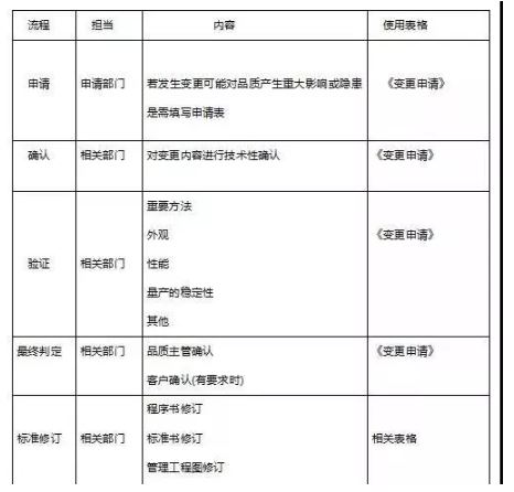在正式量产的工程(4M1E)变更要遵守以下流程。