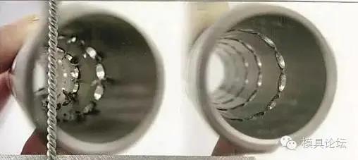 图2 用去毛刺工具处理之前(左)和之后(右)的交叉孔表面对比