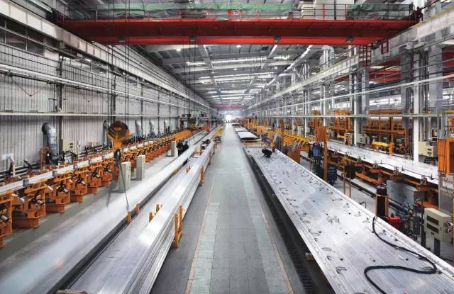 车体生产的过程是这样的:先将购进的铝合金原材料按尺寸切割,之后加工焊接成不同部件,这些部件被组合,最终组焊成一个车体。
