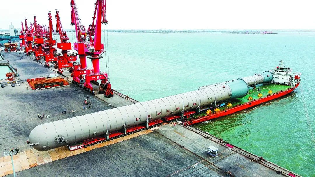 该设备的成功上岸刷新南港工业园区,最长、最重设备上岸纪录,标志着项目正式进入设备安装阶段。