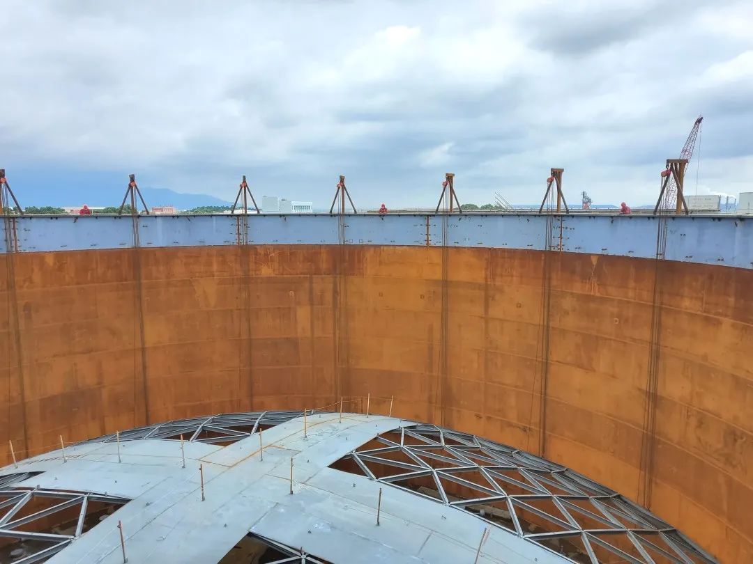 这是2021年,在销售华中安庆油库扩容项目建设现场,正在吊装的是储罐网壳,净重约48吨。该项目于2021年12月28日完成中交,建设完成后,安庆油库总库容达28万m³,是中国石化在皖最大成品油能源储备基地。