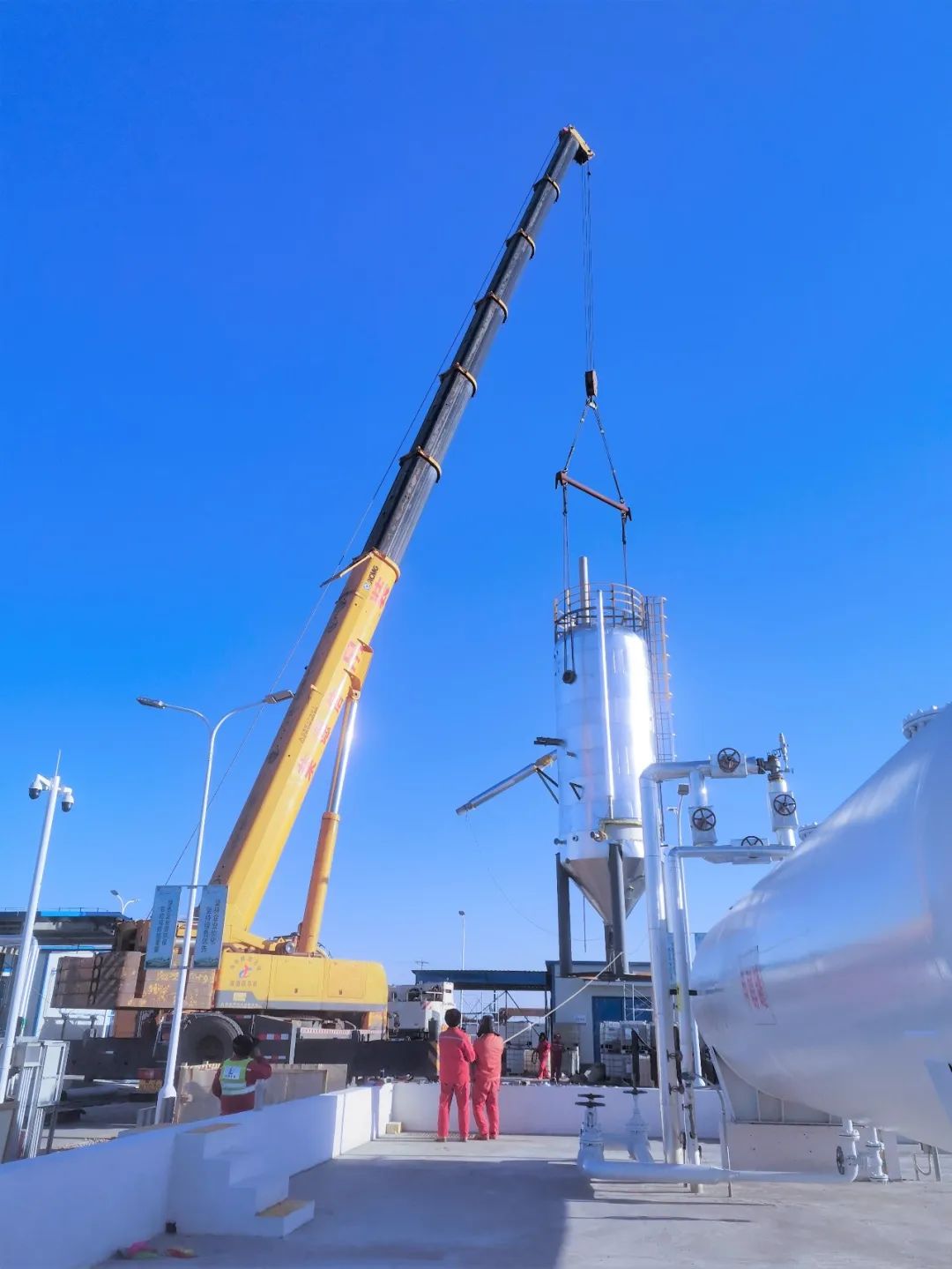 这是2021年,在华北石油局大牛地气田2号脱硫站扩能改造项目建设现场,正在吊装的是主设备再生塔,净重20吨。该项目于2021年12月完成,改造后每天能处理含硫天然气50万。