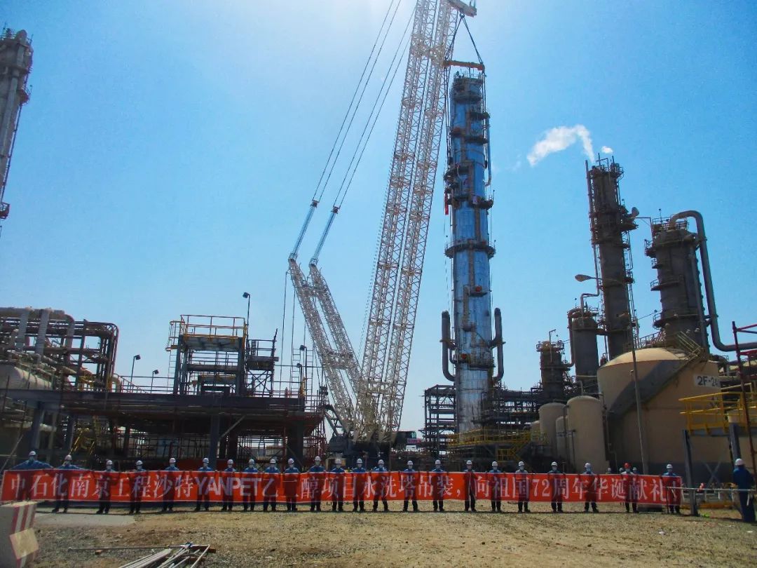 2021年9月29日,南京工程公司总承包的沙特乙二醇项目核心设备水洗塔一次吊装成功,重达880吨。2022年1月18日,项目一次开车成功并顺利产出合格产品。