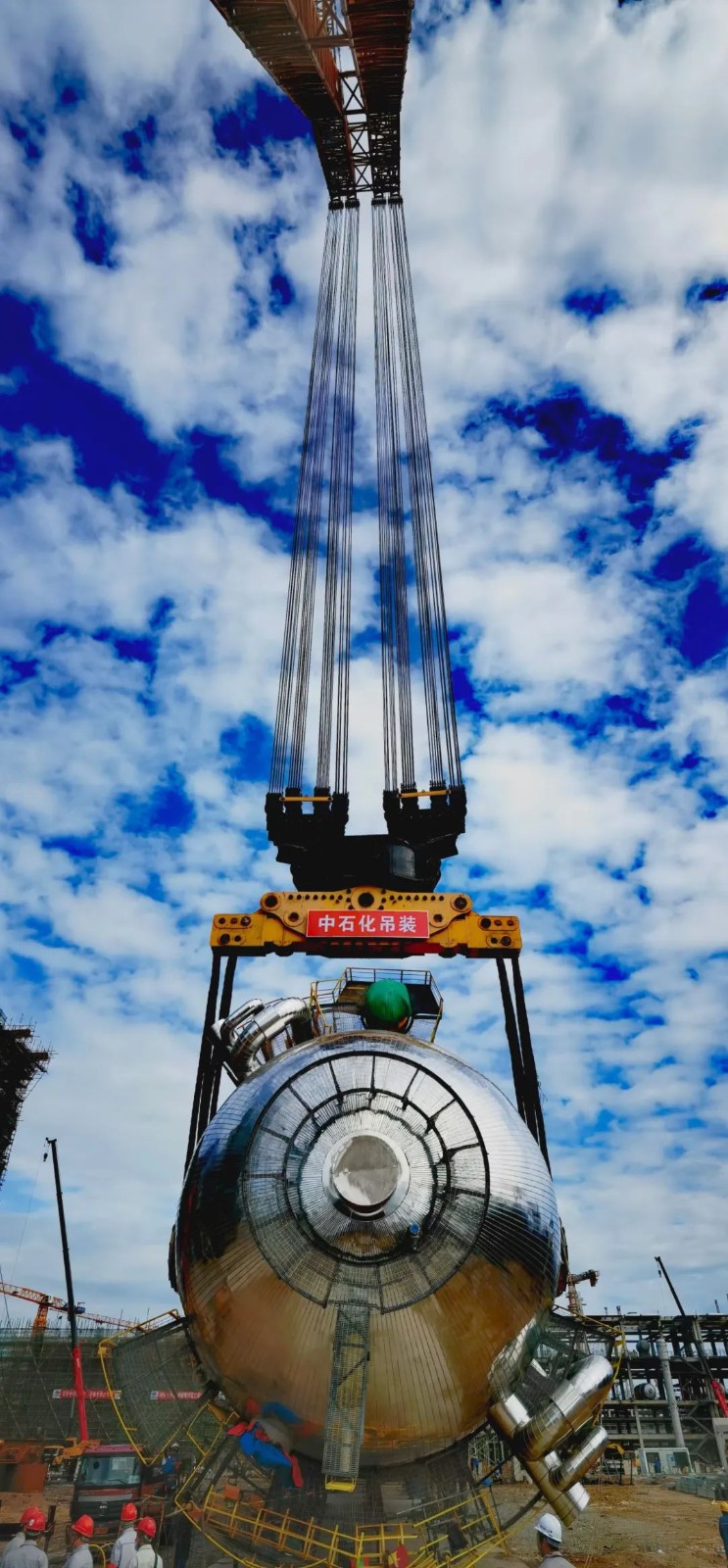 这是2019年,在茂名石化公司260万吨/年浆态床渣油加氢装置项目建设现场,正在吊装的是浆态床反应器,设备净重2260吨。该项目于2020年12月完成,是目前全球最大的浆态床渣油加氢装置。