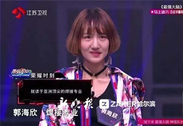 节目上,当大家听说她是学焊接专业的,都不自觉地笑了。连她上热搜的方式都与众不同,其他选手都是名字直接出现在热搜榜上,只有她是以“焊接”两个字登上热搜。她解释说:“其实我这个专业并不像大家想象的那样,而是专门研究焊接技术的,主要应用于焊高铁壁板和航空、航天一类的。”